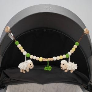 Cute baby carriage chain for unforgettable walks with sheep 🐑 and grass 🌿 – looks chic and fits every baby carriage.
