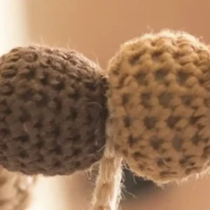 The fabric baby carriage chain with crocheted squirrels is made from 100% cotton yarn.