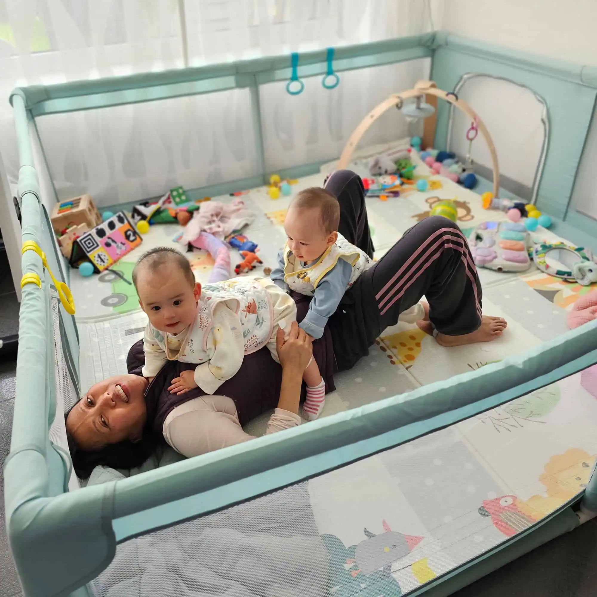 - Flexible placement: Can be used on play mats or directly on the floor.